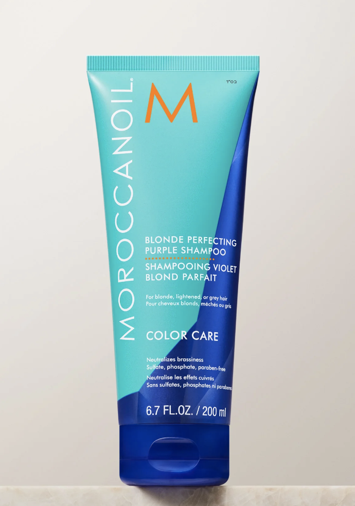 I asked Rez how I could help extend the lifespan of my color between salon visits and he recommended the Moroccanoil Blonde Perfecting Purple Shampoo. For best results, use it once a week or every two weeks to help keep yellow tones under control.