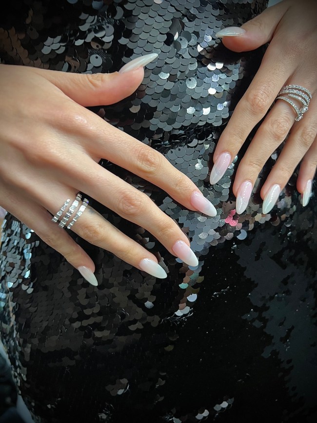 Luckily, if you’re looking to recreate Madison’s nail look at a salon, it won’t be too difficult to get it to a T. Simply ask your nail tech for medium almond extensions, ombre consisting of nude and milky white, and a touch of chrome. (When in doubt, a picture reference makes everything way easier.) But, if you’re more of an at-home nail girly, rest assured there are tons of ways to get the look on your own too. Even if you don’t have a UV lamp for gel polish, there is regular polish with that same milky effect. Experiment with a few different shades to get that faux French manicure look, top with another layer of the milky polish—and your nails are officially red carpet ready.