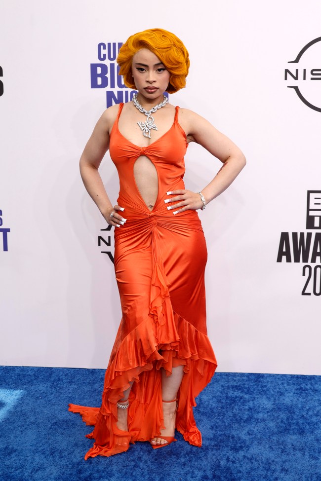Ice Spice’s monochrome look at the BET Awards is a true orange creamsicle fantasy. We already knew orange was her color, and this outfit is only further cementing that. But beyond her stunning dress, her wavy old Hollywood bob is giving us all the glamour the red carpets have been missing. If it’s one thing about Miss Ice Spice, you’ll never catch her lacking in the hair department. We honestly thought her hair couldn’t get any better after her long locks at Alexander McQueen, but this is exactly the plot twist we needed to see how versatile she truly is.