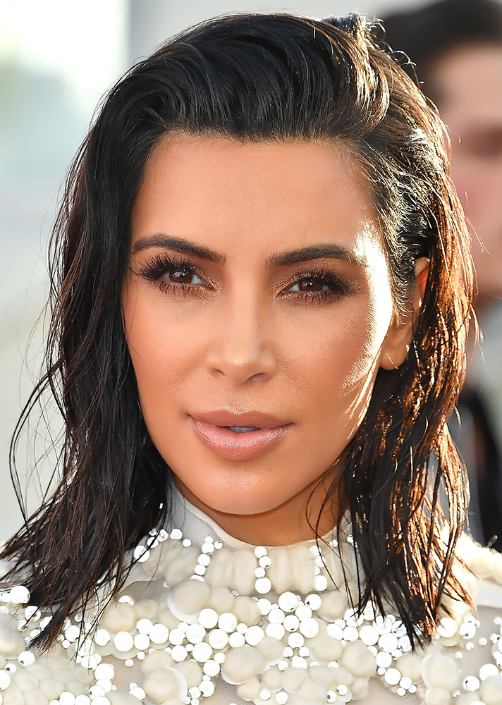 At Sunday night’s Fashion Los Angeles Awards, the reality TV star debuted her new haircut, which she wore in slicked-back, wet waves. Hairstylist Chris Appleton, who also works with Katy Perry and Ariana Grande—and was the one who cut Kim’s hair into her chest-length lob last week—is responsible for Kim’s sleek style.