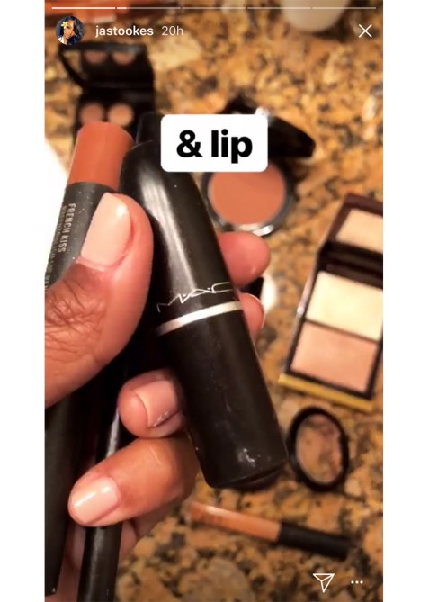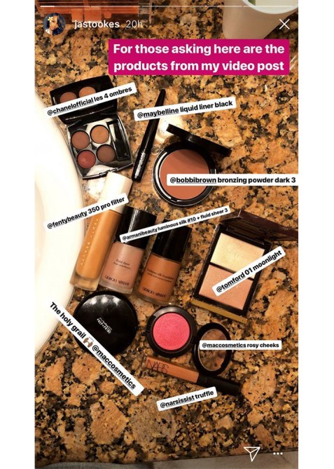 Soon after, Tookes added to her story; this time, posting a photo of all the products. While scanning the pile of Tom Ford highlighter, Chanel eyeshadow palette, and of course, Fenty Beauty Foundation, a drugstore name quickly caught our eye: Maybelline. As best as we can tell, the exact liner is their Master Precise Ink Metallic Liquid Eyeliner ,which retails for just $8.99.