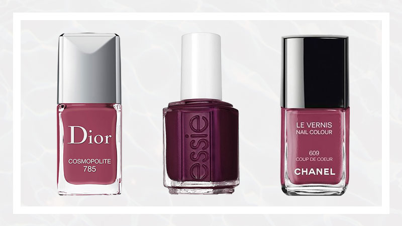 Deep Burgundy: Spotted at shows such as Derek Lam and Marchesa during the Fall 2015 season, this rich shade is, according to manicurist Miss Pop, a “re-Vamp, pun intended” from the ’90s, and she’s all for it. She suggests Essie’s In the Lobby, a rich wine that will make you feel like you’re in a time warp. Manicurist Geraldine Holford recommends Dior Vernis Cosmopolite, a brand-new take on burgundy that can be worn with just one coat, and flatters any skin tone. (L to R: Dior Vernis Cosmopolite, $27; Essie’s In the Lobby, $8; Chanel Coup De Coeur, $27)