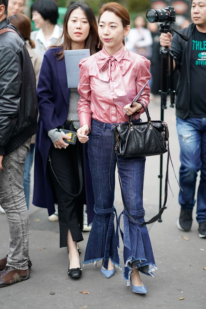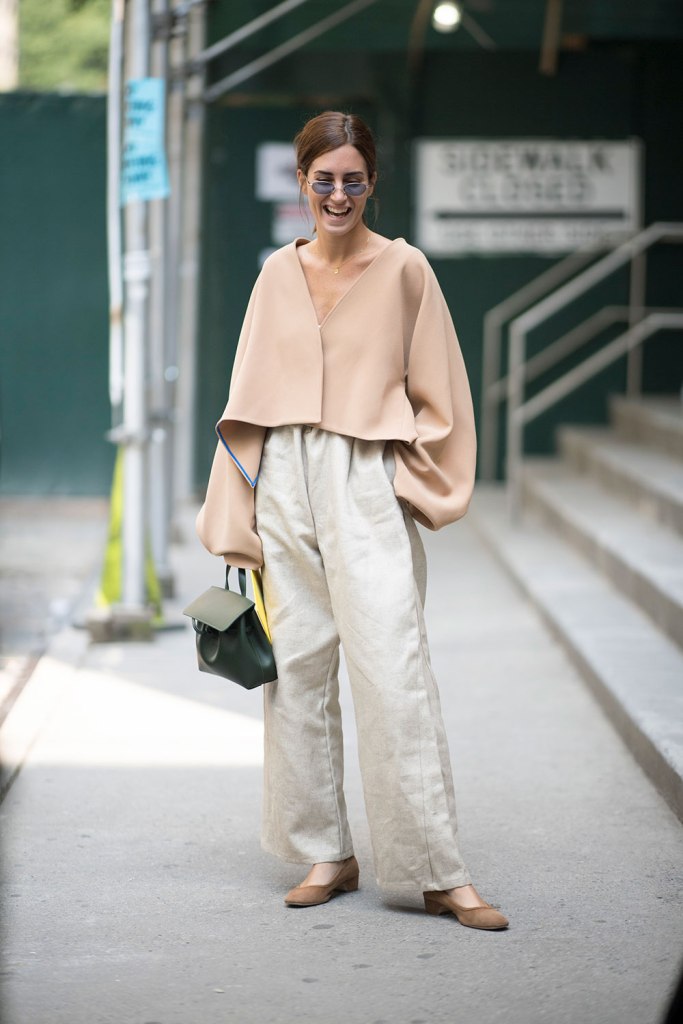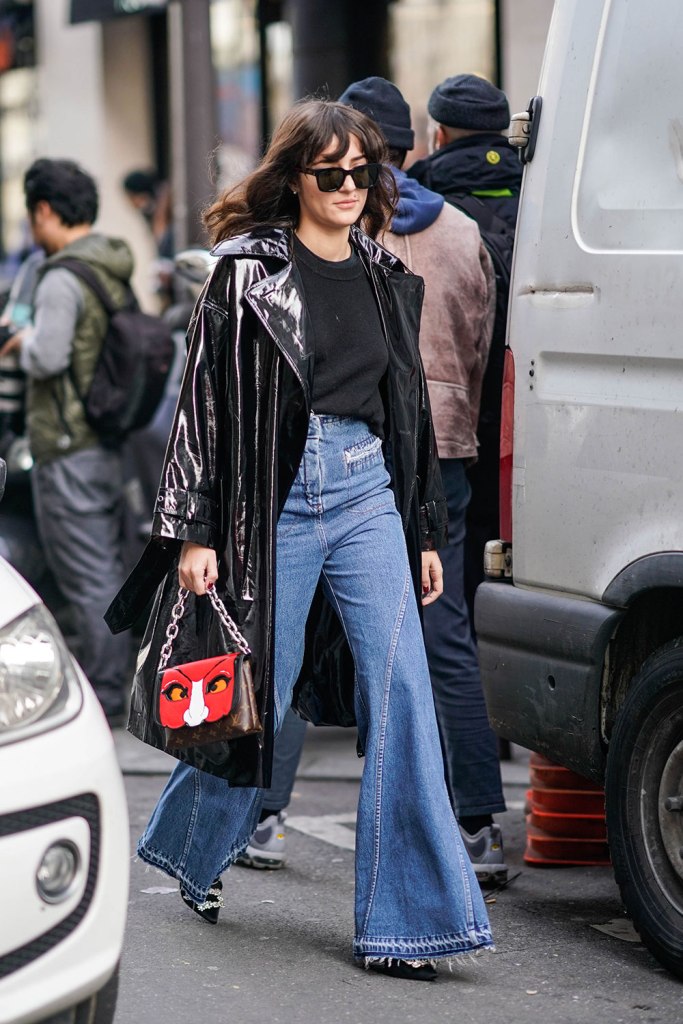 There are three shoe rules—or options—when you’re wearing flared pants. The first is to have your shoes not be seen at all. If you’re wearing a big enough flare, the shoe should be hidden and the pant will graze the ground. The next option is to add a little structure with a pointy-toe pump. Last, you can opt to keep things casual with a flat or sandal.