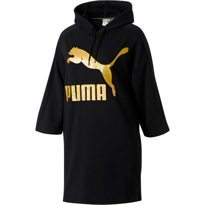 We just want to snuggle up in this oversized Puma hooded dress and call it a day. We’re loving the new pieces, especially their velvet tights—oh HELLO!