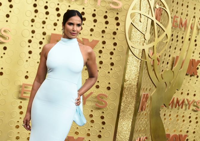 Actress Indya Moore stunned in a white Grecian inspired gown. Her groundbreaking series Pose is nominated for an Outstanding Drama Series.