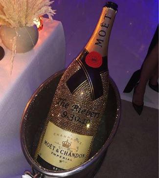 The couple also enjoyed a fully crystalized Moët & Chandon Imperial Brut bottle for their celebrations. It was made with a whopping 9,682 Swarovski crystals. The bottle reportedly took 16 hours to make and was definitely one of the highlights of the evening. Kylie Jenner shared an Instagram shot with the fabulous crystalized bottle.