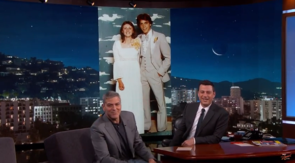Yesterday, when Clooney appeared on “Jimmy Kimmel Live” he showed off a photo of his 17-year-old self at his prom in 1978. While these days Clooney’s known for sporting pricey Armani threads on the red carpet, the throwback photo is proof that Clooney wasn’t always immune from fashion faux pas. His outfit choice for prom? That’d be a not-so-flattering grey tuxedo with a ruffled button-down shirt and a oversized bow-tie—very ’70s, very cringeworthy (not that we should talk—have you seen our prom photos?!)