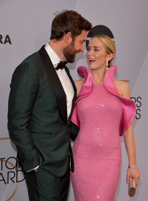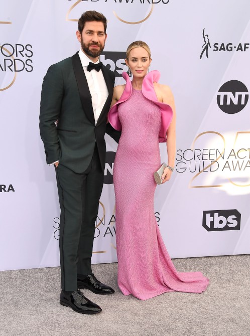 The couple arrived in style at the 25th Annual Screen Actors Guild Awards, with Blunt rocking a bold pink look and slicked back hair.