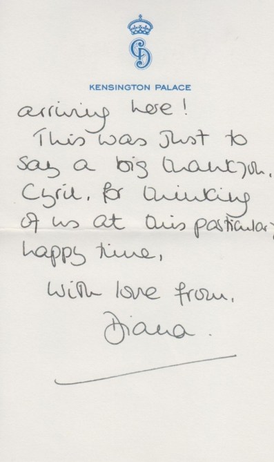 “Ah, Diana. Her handwriting is so recognizable. The large, round, openness of it reveals a woman who needed love, affection, attention and approval in a very big way. Her rounded, soft writing has few angles and shows that, like Kate, an abiding need for harmony prompted her to do her best to create a serene backdrop for her life. The horizontally expanded writing indicates that freedom was a powerful imperative for her.”