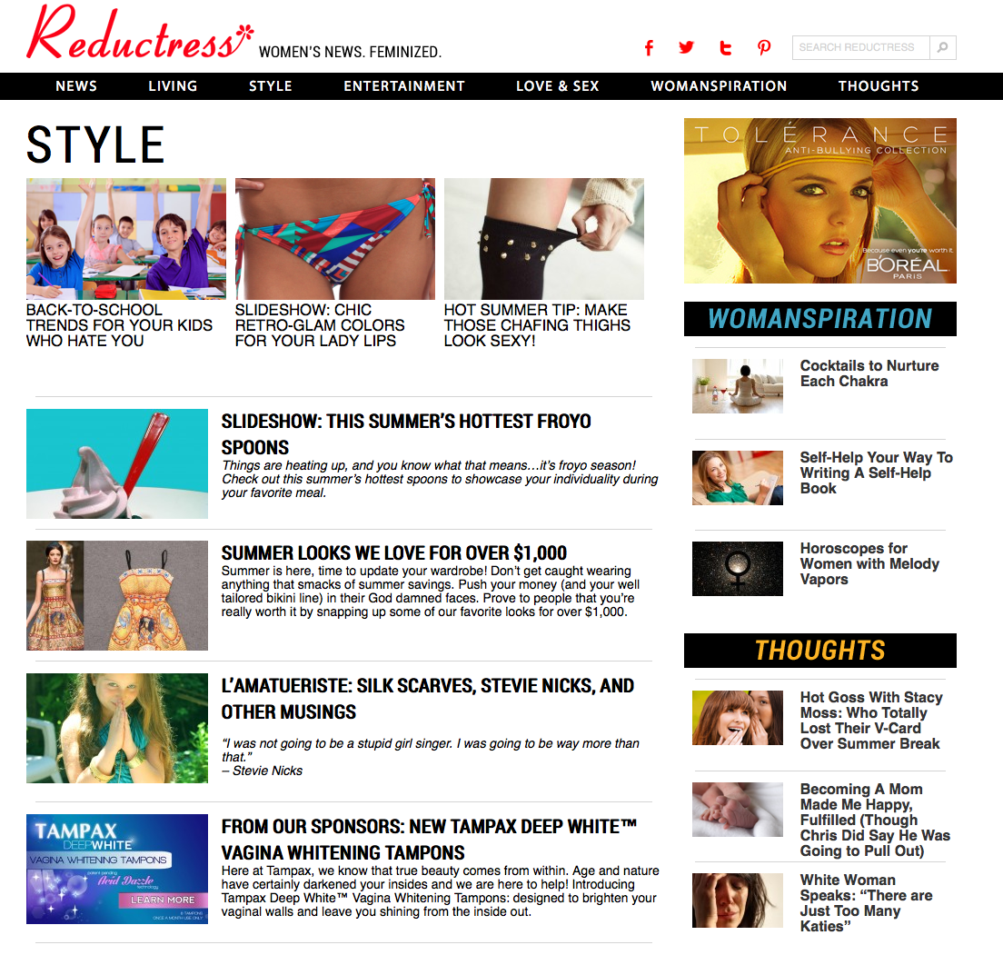 Around here, we’re endlessly fascinated by the wide world of online fashion, style, and shopping, and it seems that every week brings with it a brand-new site to be obsessed with. Since keeping track of ‘em all can be a feat of epic proportion, we’ve decided to feature “A Site To See” every Monday, which highlights a cool new website you’ll definitely want to bookmark. This week: a hilarious lifestyle site called Reductress.
