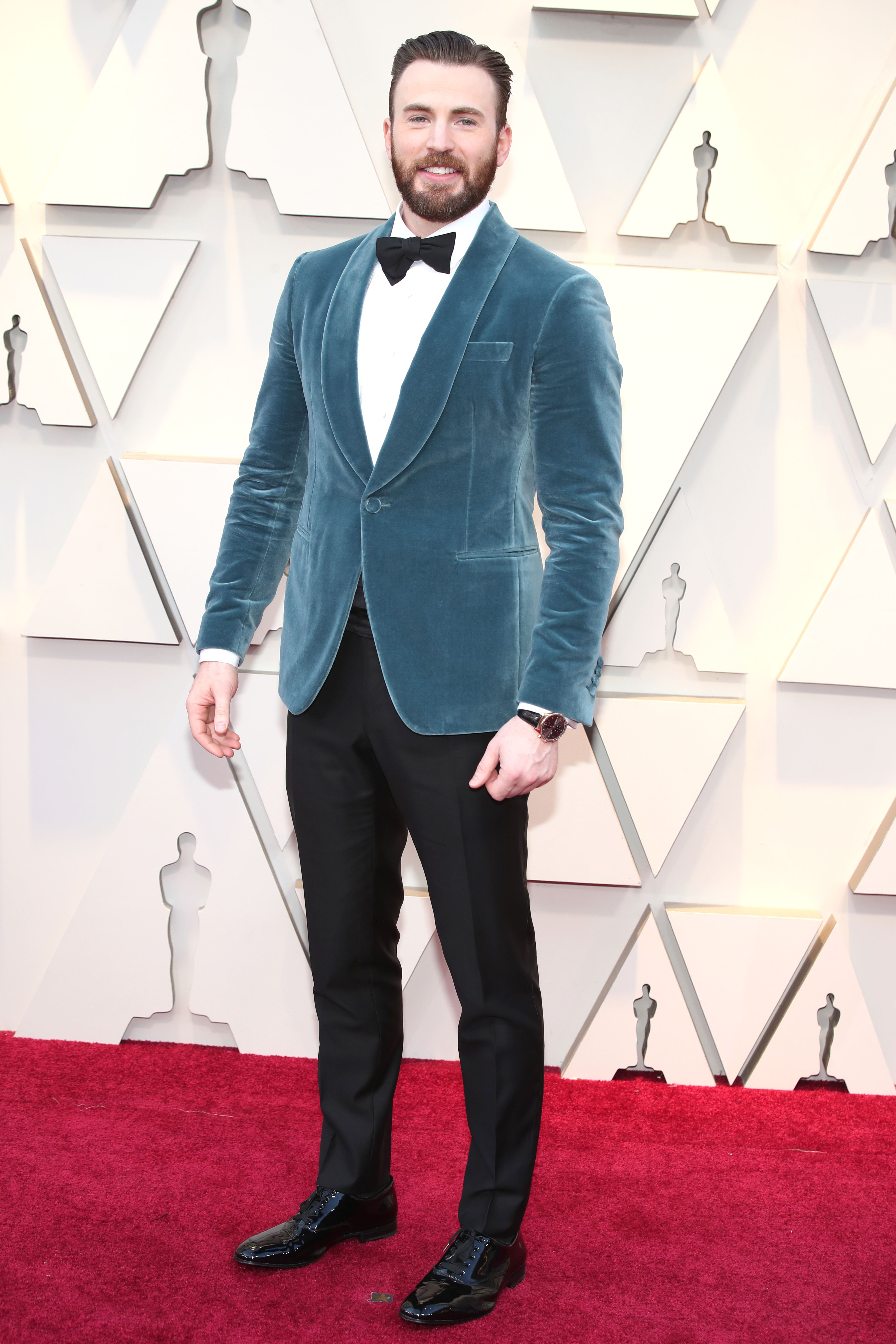 Chris Evans added a little color to the Oscars with this blue tuxedo jacket.