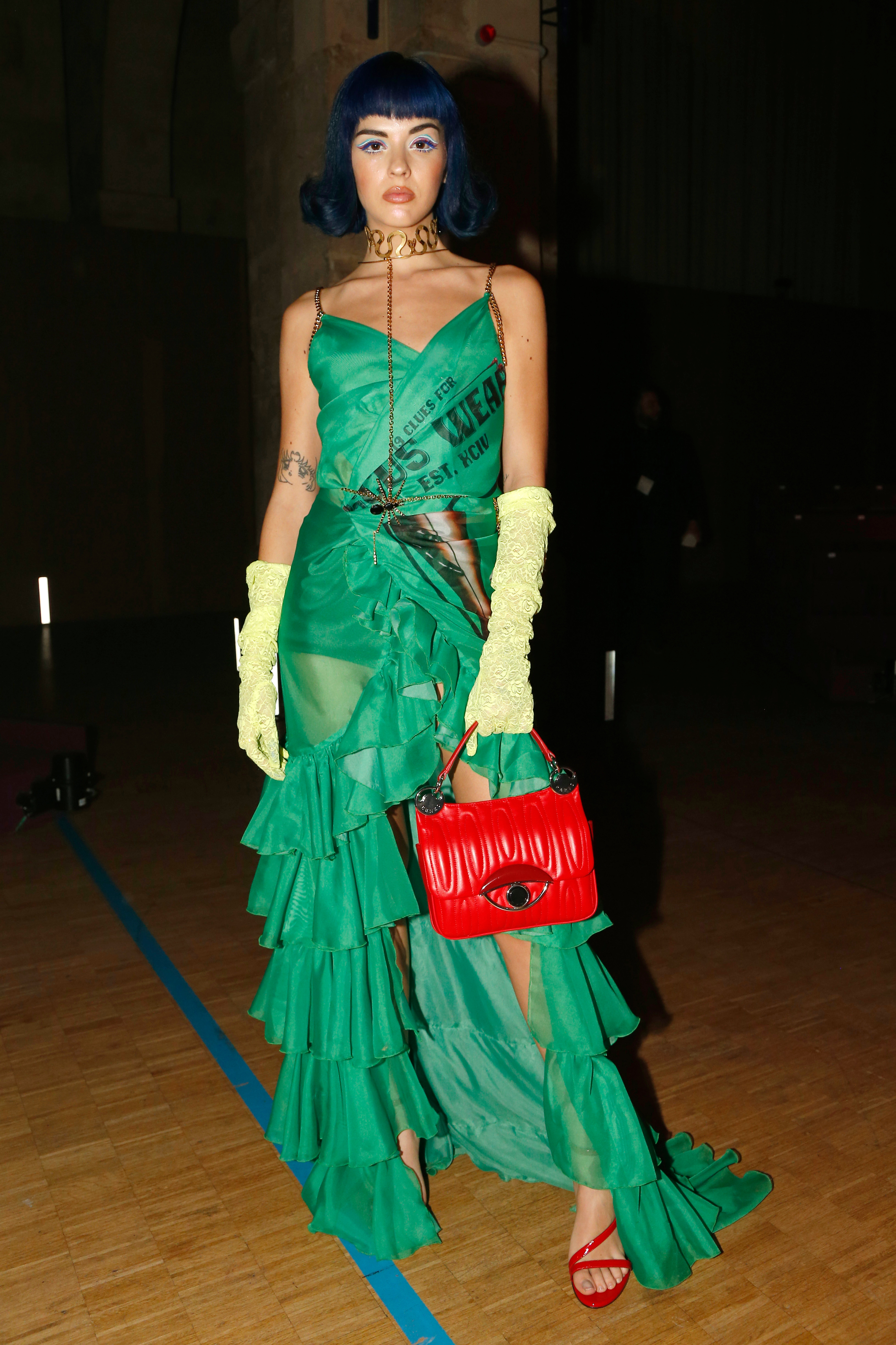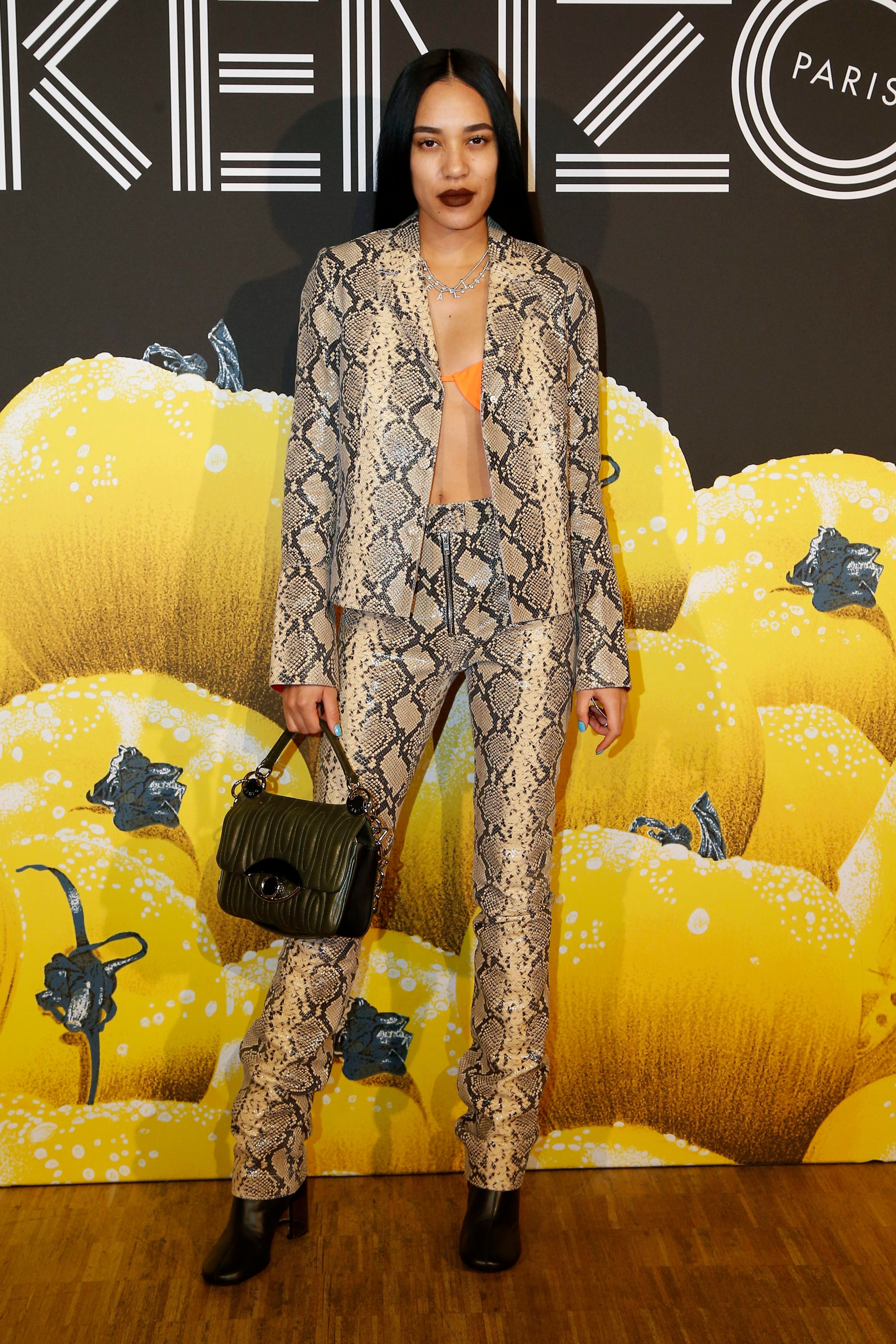 Seriously, each attendee was outfitted perfectly for a Kenzo show, where designers Humberto Leon and Carol Lim have never failed to incorporate bold colors and pattern since the start of their reign in 2011. Celebrities—like designer Aleali May and Lachlan Watson, who plays Susie on Netflix’s The Chilling Adventures of Sabrina—attended the PFW show in incredible street style looks. From head-to-toe snakeskin prints, giant pink coats, polka dots galore and, of course, several versions of the classic Kenzo eye logo, these front row guests came to stun. Were they the best dressed group I’ve seen so far during Paris Fashion Week? Honestly, maybe.