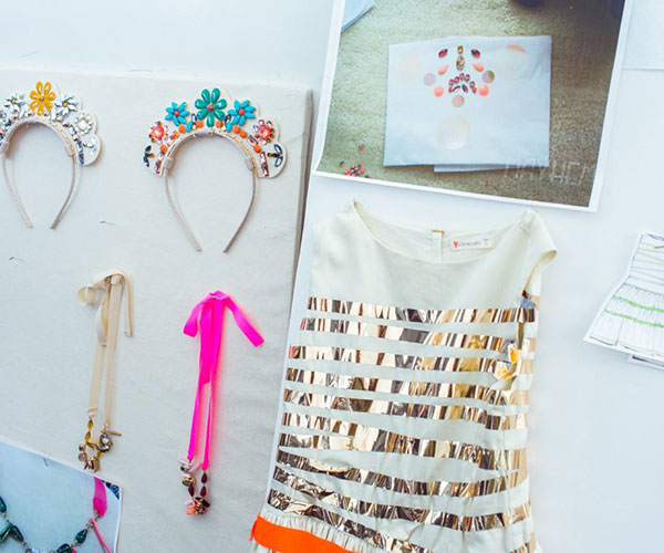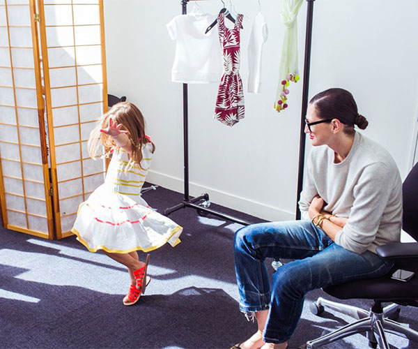 So, how does a child design a capsule collection for one of the world’s most iconic fashion brands, you ask? Jenny Cooper, head of Crewcuts design, told WWD, “When we met with Mayhem for the first time we were really curious to see how she would work and were amazed to watch this barely four-year-old girl start meticulously folding the pleats on a skirt and placing stones very specifically and carefully on a top she had just fashioned around herself. She has such an inventive and creative personality that really resonated with us. It was great to have a truly creative child be at the heart of the design process.”