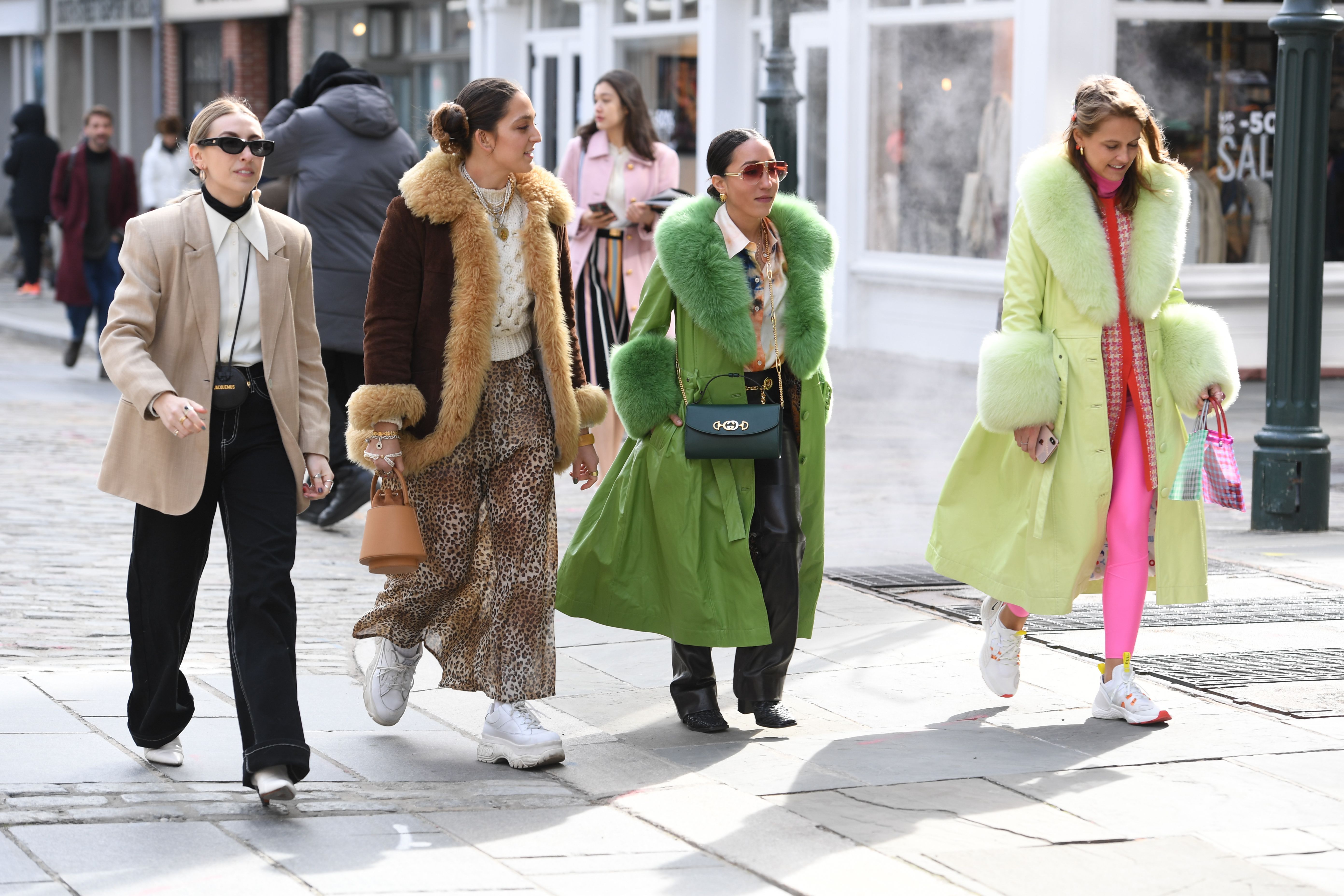 Guests are seen on the streets of New York during NYFW 2019 wearing colorful coats.