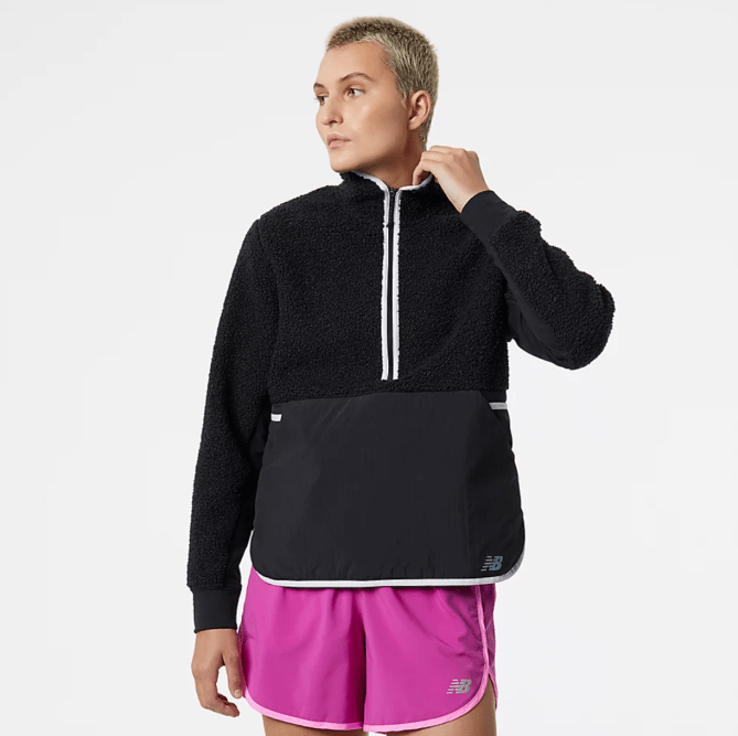 Keep warm in this sleek, sherpa pullover that won’t weigh you down. It’s perfect for those chilly winter runs or while working from home.