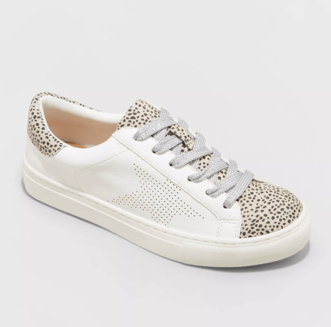 Add something fierce to your wardrobe with these fresh white sneakers that have a pop of animal print for a fun contrast. These are sure to help you embrace your wild side.