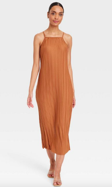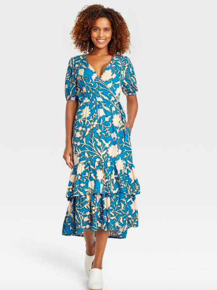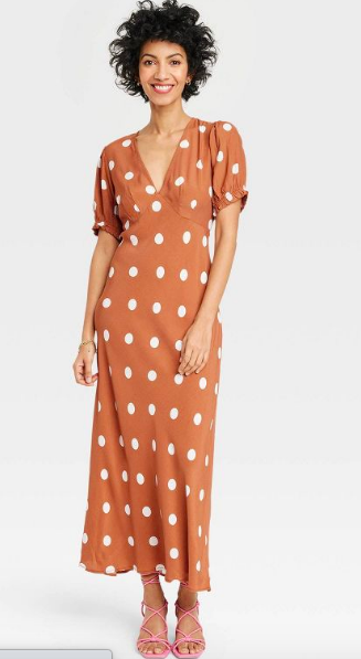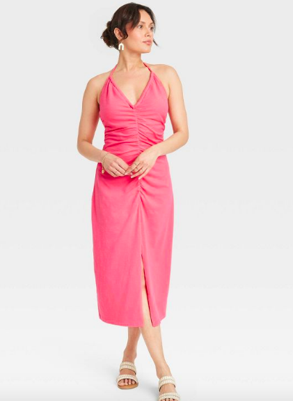 What I love about most of the fabrics used in Target’s dresses is that they are stretchy and form-fitting without being tight. That means you essentially get a custom fit every time without even trying. This knit ruched bodycon dress does just that and you can pick it up in three different colors in sizes XS through 4X.