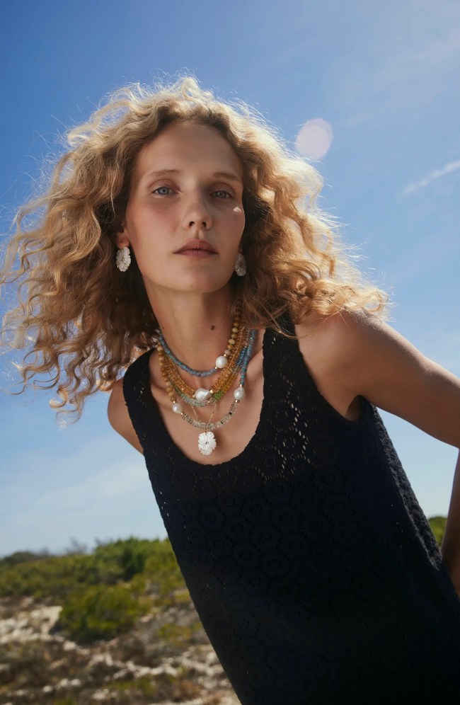 Lizzie Fortunato’s beaded necklace offers an elevated and playful take on puka shells, particularly because it’s dripping in ocean-hued quartz and 18-karat gold. Warning: this necklace is highly stackable— meaning you’ll want several.