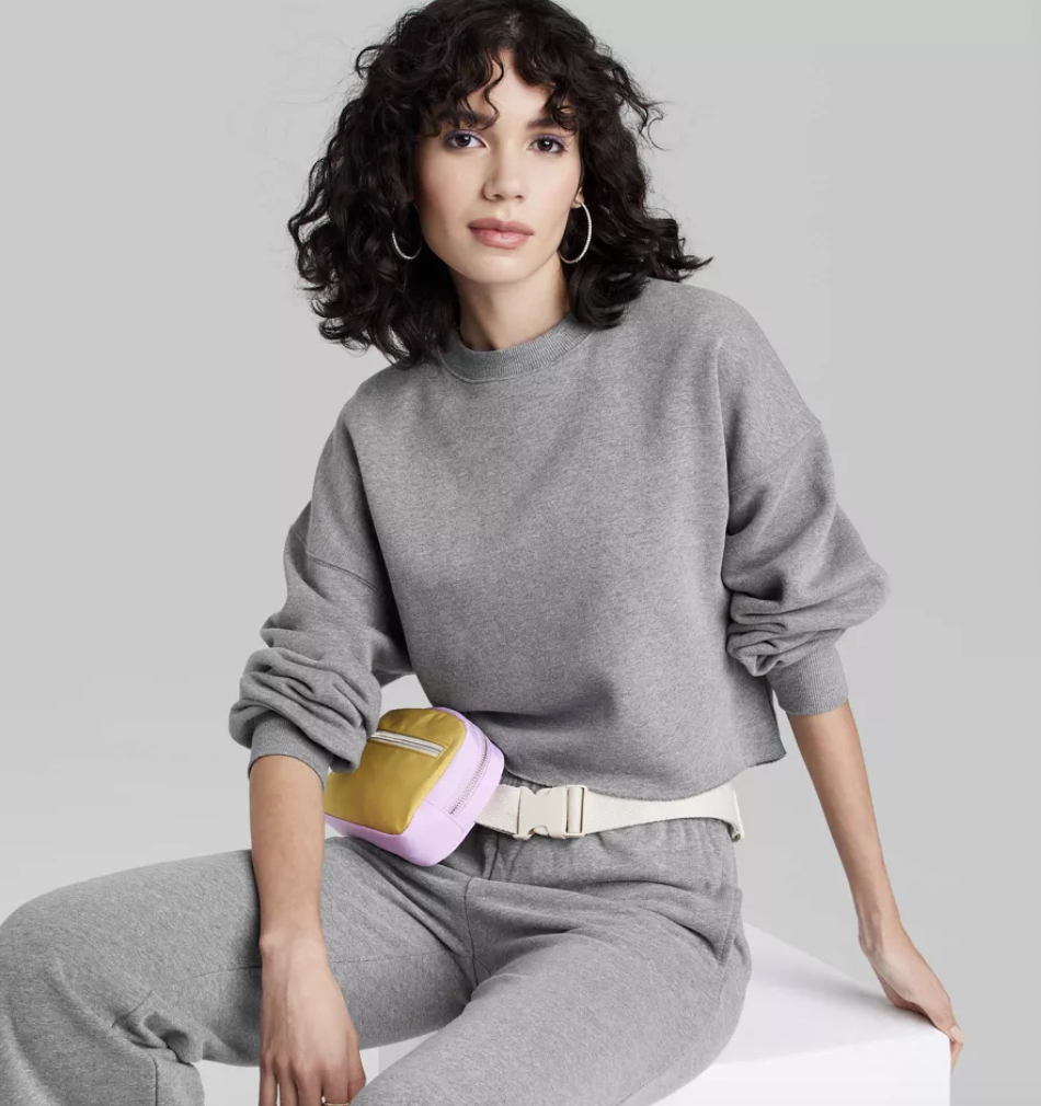 I personally love the all-gray look. It’s perfect for taking that flight home to see your family or even just on a Sunday afternoon running errands. The matching cropped sweatshirt is also available for just $18. You can legit get a full outfit for only $43.