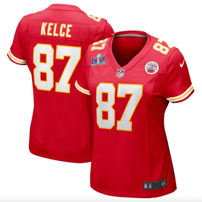 Where can one buy an official Travis Kelce Chiefs jersey? As luck would have it, numerous retailers carry both men’s and women’s Nike jerseys decorated with #87. You’ll find tons of options at places like the NFL Shop, directly from Nike, Dick’s Sporting Goods, Lids and even Walmart. Amazon does offer unofficial Chief’s merch at a much more affordable cost, just be warned they won’t be as authentic or high-quality (though this T-Swift jersey is arguably pretty darn cute.)