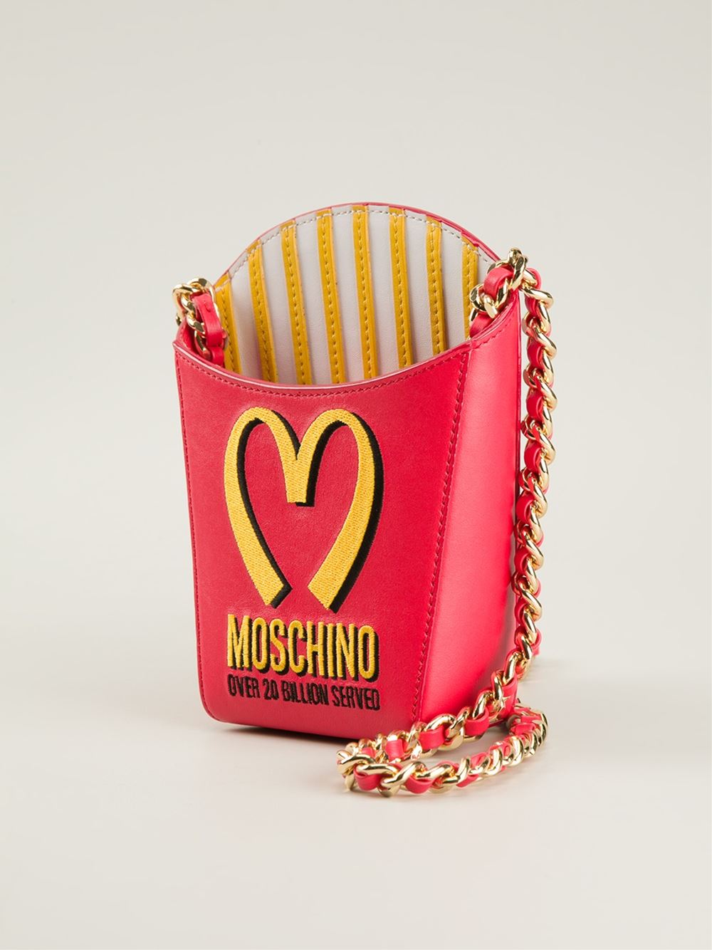 The holidays are coming, providing you with the perfect opportunity to make your fantasy of owning one of the gems from Moschino’s F/W 2014 collection a reality. Only you (and Santa) can super-size your dreams. Moschino Embroidered Fries Shoulder Bag, $578.21; at Farfetch