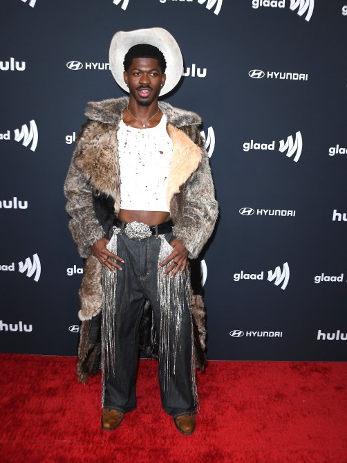 Take Lil Nas X, for example. He dazzled at the Beverly Hilton on March 27 in a vintage-looking fur coat, which he wore open, exposing a distressed white cropped tank top. He paired the pieces with loose jeans, a statement belt, and western boots. He topped his look off with a cowboy hat. I can see the gworls wearing this to the Cowboy Carter tour in a few weeks—and also when fall its NYC again in a few months.