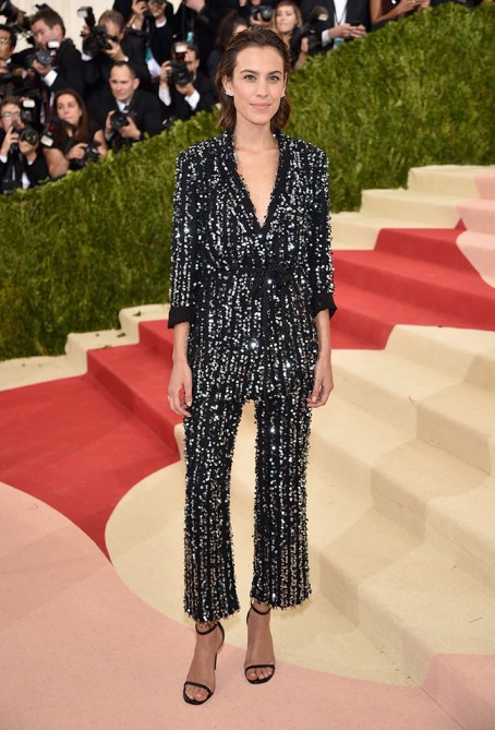 The idea to wear sequined pajamas to the Met Gala is brilliant—they’re perfect for taking a disco nap before the after-parties. The slicked-back hair gives the whole look a David Bowie vibe that we’re very much digging.