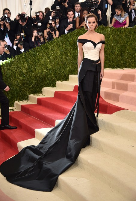 Great train action on this one, and pants to boot. Designed in partnership with Eco-Age, Watson’s look was as sustainable as it was showstopping (seriously—the fabric was made from recycled plastic bottles).