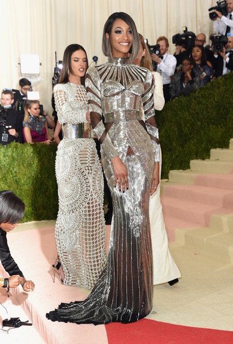 A shining (ha) example of how to get the robot look right, this column gown incorporated Chrysler Building–esque architectural elements with Olivier Rousteing’s signature curve-hugging silhouette.