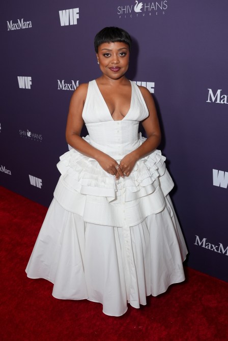 Quinta Brunson wears Carolina Herrera.