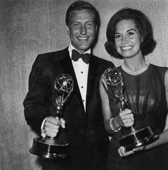 If we’re talking classic Emmys style, we can’t forget Mary Tyler Moore’s hair flip in 1964! (Also: how handsome is Dick van Dyke?)