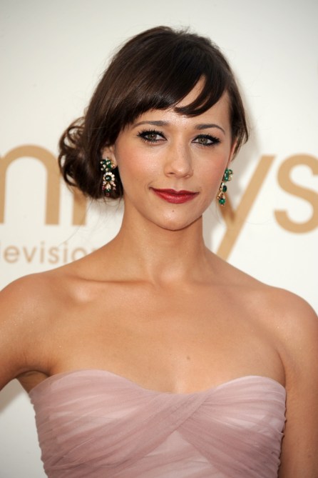 Rashida Jones’ elegant dark lips and side-bun made this a breakout look in 2011. We especially love the way her brick-red lips work with her emerald earrings!