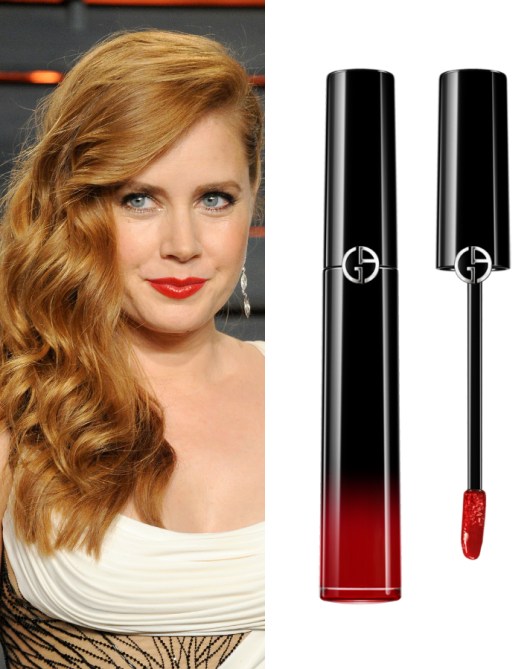 <b>Amy Adams</b> got her bold red lip courtesy of <a href=“http://www.giorgioarmanibeauty-usa.com/Ecstasy-Lacquer/A3155,default,pd.html”>Giorgio Armani Ecstasy Lacquer in #400</a> ($38), which makeup artist <b>Stephen Sollitto</b> called “the glossiest red around.”