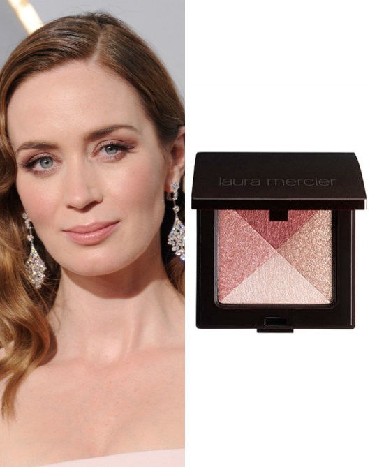 <b>Emily Blunt</b>’s glow came from a healthy dusting of <a href=“https://www.lauramercier.com/blush/shimmer-bloc-prod220025.html”>Laura Mercier Shimmer Bloc in Pink Mosaic</a> ($44), which makeup artist <b>Jenn Stretcher</b> used to “make her skin shimmer.”