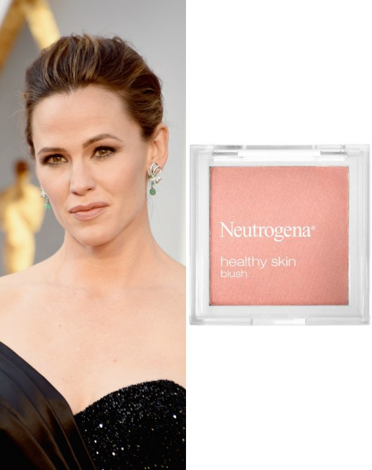 For a soft, sculpted flush, makeup artist <b>Genevive Herr</b> used <a href=“http://www.walmart.com/ip/45589738?wmlspartner=wlpa&adid=22222222227033902363&wl0=&wl1=g&wl2=c&wl3=72194876792&wl4=&wl5=pla&wl6=140127287552&veh=sem”>Neutrogena Healthy Skin Blush in Rosy</a> ($7.99) to define <b>Jennifer Garner</b>’s bone structure without the drama of contouring.