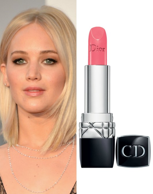 <b>Jennifer Lawrence</b> got a slightly frosted pink lip look thanks to <a href=“http://www.dior.com/beauty/en_us/fragrance-beauty/makeup/lips/lipsticks/pr-lipsticks-y0027850-couturecolourvoluptuouscare.html”>Rouge Dior Lipstick in #359 Miss</a> ($35) and <a href=“http://www.dior.com/beauty/en_us/fragrance-beauty/makeup/lips/lip-gloss/pr-gloss-y0285300-sensationalmirrorshinehydra-plumpingvolume.html”>Dior Addict Ultra Gloss in #343 Spring Ball</a> ($30), a brand-new shade for spring.