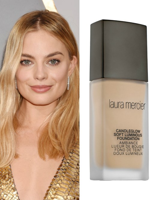 <b>Margot Robbie</b> looked gloriously modern and fresh-faced last night, thanks to makeup artist <b>Tyron Machhausen</b>, who prepped the actress’s skin with <a href=“http://www.lauramercier.com/primer/foundation-primer—radiance-prod520002.html#start=5”>Laura Mercier Foundation Primer—Radiance</a> ($36) before blending the new <a href=“https://www.lauramercier.com/foundation/candleglow-soft-luminous-foundation-prod12700109.html”>Laura Mercier Candleglow Soft Luminous Foundation in Butterscotch and Dune</a> ($48) all over her face.