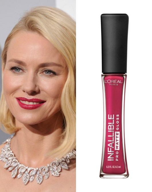Makeup artist <b>Hung Vanngo</b> used <a href=“http://www.lorealparisusa.com/en/products/makeup/lip-color/lip-gloss/infallible-pro-matte-gloss.aspx “>L’Oreal Paris Infallible Pro-Matte Gloss in Rouge Envy</a> ($9.99) to score <b>Naomi Watts</b>’s standout berry lip.