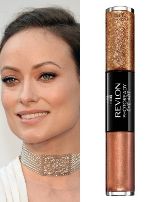Makeup artist <b>Melanie Inglessis</b> used <a href=“http://www.revlon.com/products/eyes/eye-shadow/revlon-photoready-lid-line-lash-art#309976454092||0”>REVLON PhotoReady Eye Art in Burnished Bling</a> ($8.99) to add a touch of face-brightening bronze to <b>Olivia Wilde</b>’s lids.