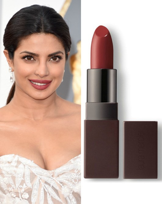 MUA’s <b>Stephanie Brooke Barnes</b> used not one, but two lip colors to create <b>Priyanka Chopra</b>’s gorgeous berry-stained pout—she layered <a href=“https://www.lauramercier.com/lipstick/velour-lovers-lip-colour-prod12615519.html”>Laura Mercier Velour Lovers Lip Colour in Cocoa Pout</a> ($28) beneath the same formula in Seduction.
