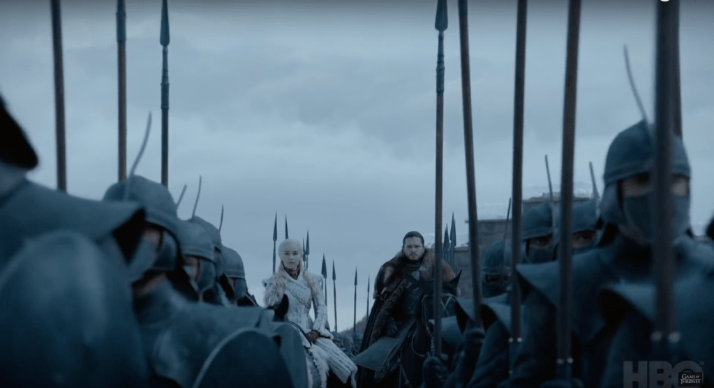 They are the ultimate duo. But based on GOT history, it won’t be a happy ending for them. So we’re a bit wary. We’re kind of being set up for failure, don’t you think? But honestly, it’s kind of worth it just to see these two together, surrounded by the ever-faithful Unsullied.
