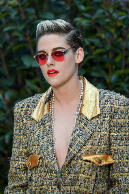 The actress arrived to the Chanel Couture Show on Tuesday wearing an androgynous suit that’s left everyone questioning our sexualities—sexuality is fluid, after all. Seriously, the combination of the tweed blazer (with no shirt underneath, I might add) and rolled gold pants is something I didn’t know I needed until this very moment. It’s like Kristen Stewart went through my grandma’s old blazer collection and turned it into a look I’m so beyond into, I might cry. I mean, the gold details on her blazer perfectly match the pants! I’m in love. (No, like, actually, I think I might be in love.)