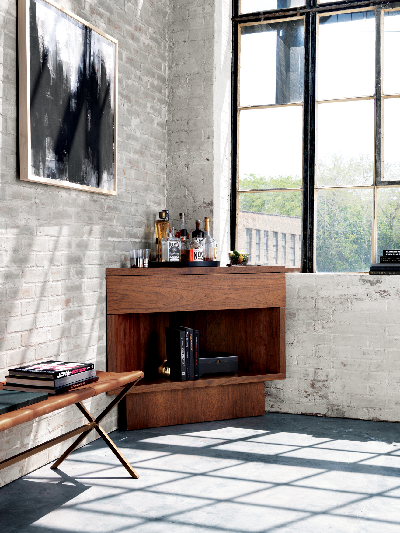 CB2 x Kravitz Design by Lenny Kravitz Topanga Corner Bar, $749; at CB2