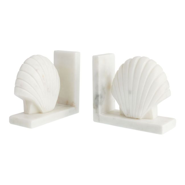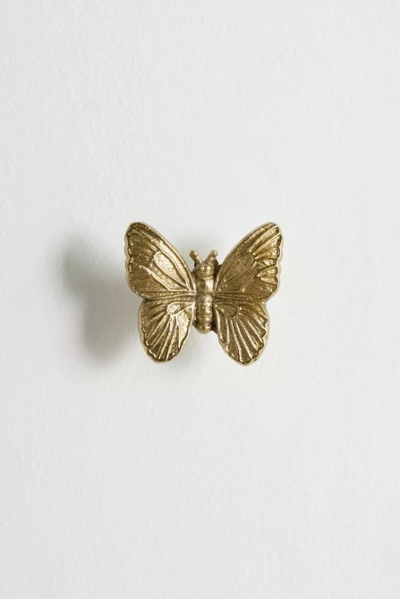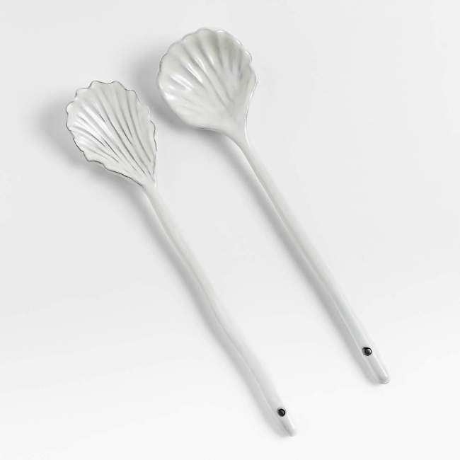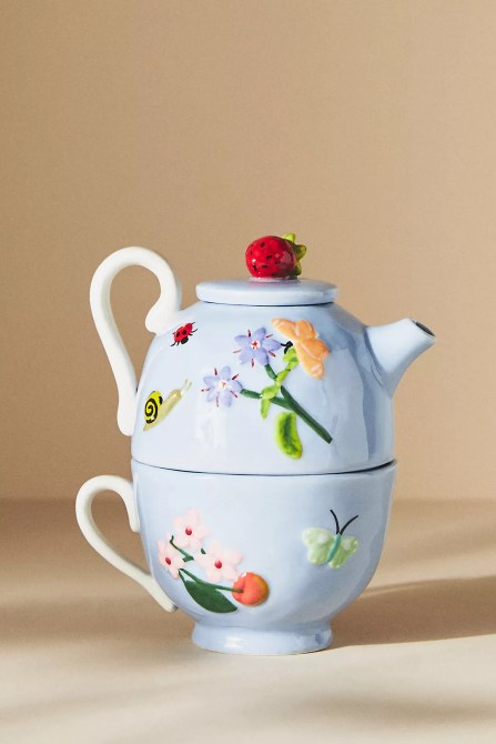 From left to right: mushroom salt and pepper shakers, a bow pillow, a teapot, a shell-shaped serving spoon set, a butterfly wall hook, a candle