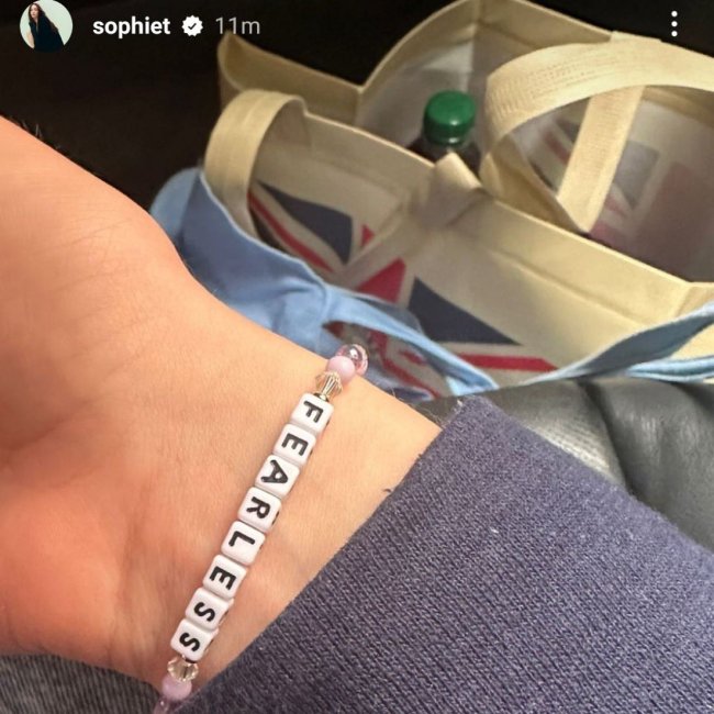 Turner was out with her bestie Taylor Swift, whose house she’s been staying in while the details of her divorce—including custody of their two children—are ironed out. Turner shared a photo—and has since deleted it—of a beaded friendship bracelet on Turner’s wrist that read Fearless, which many believe to be a reference to Swift’s 2008 album of the same name; an album which features the vault song, “Mr. Perfectly Fine” about Swift’s breakup from Jonas. They dated for a brief three months when Swift was 18.
