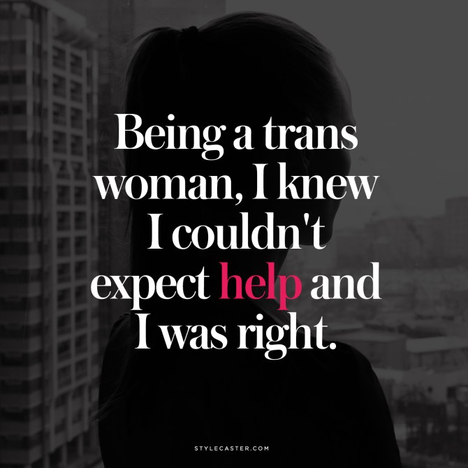 I started transitioning in 2011 and had taken hormones for about two years prior to the rape. But I was, and still am, pre-op, so no matter how well I pass, my transness unavoidably tends to come up. And in recovery, it came up a lot.