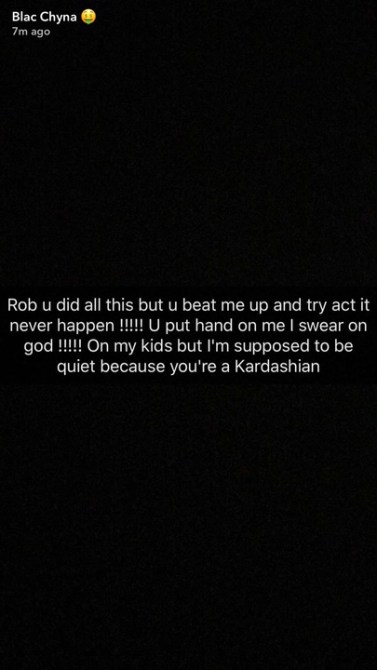 Chyna didn’t take Rob’s allegations lying down, either. In an effort to defend herself, the mom-of-two alleged on Snapchat that she distanced herself from the “Keeping Up with the Kardashians” star because he physically assaulted her. She claimed that “the light will come to the light” soon enough.